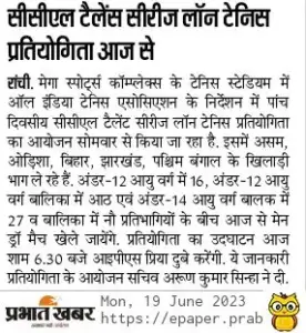 - JHARKHAND STATE TENNIS TOURNAMENT January 2025